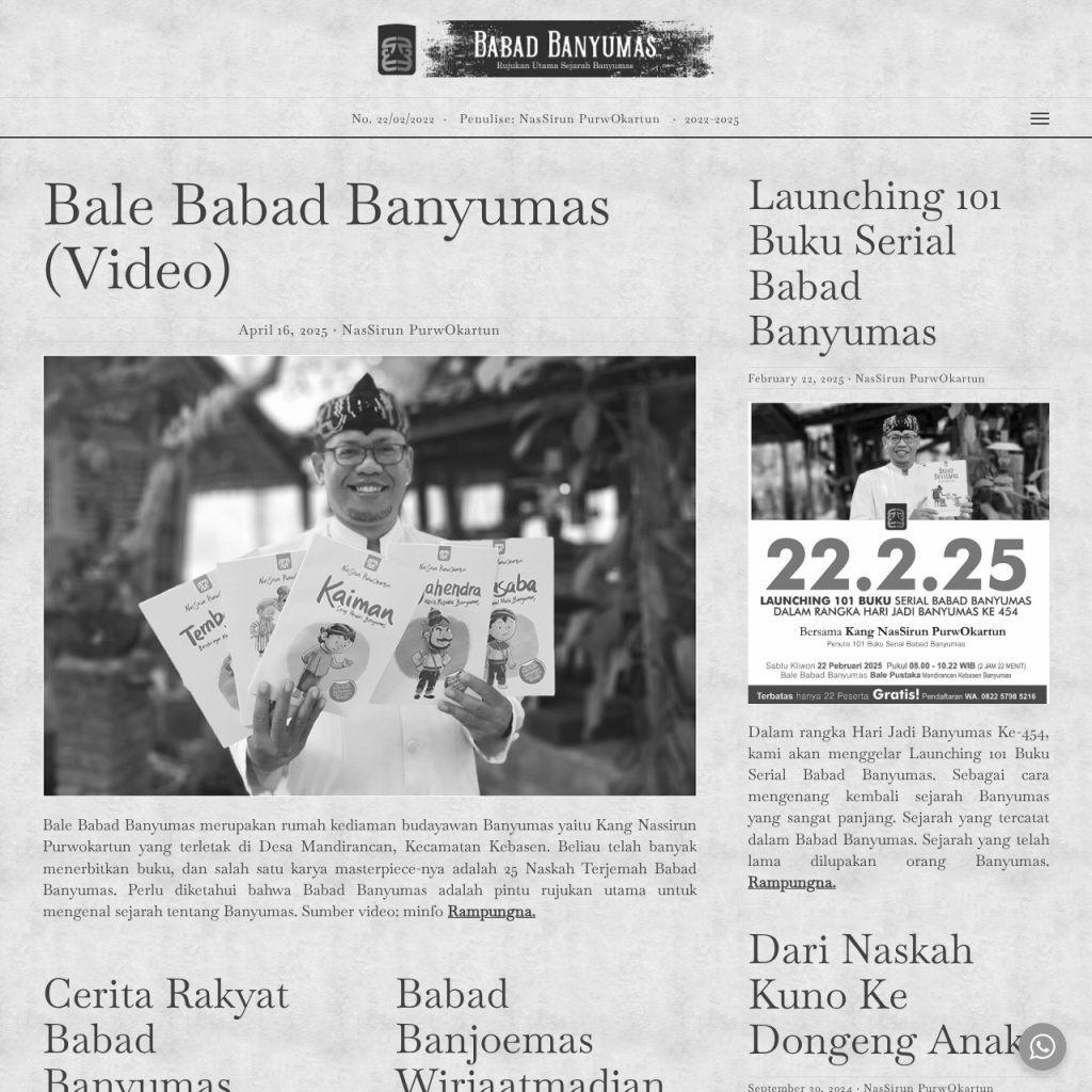 Untuk mendukung konten yang berfokus pada sejarah dan budaya, babadbanyumas.com memilih tema WordPress yang simpel namun sangat sesuai dengan nuansa sejarah yang ingin disampaikan. Desain yang bersih dan minimalis ini tidak hanya membuat website mudah dibaca, tetapi juga menonjolkan konten utama—yaitu artikel dan arsip sejarah—tanpa distraksi visual yang berlebihan. Pilihan warna, tipografi, dan tata letak yang klasik dan elegan secara efektif menciptakan atmosfer yang berwibawa dan penuh penghormatan terhadap kekayaan sejarah Banyumas. Tampilan ini membantu audiens untuk fokus pada narasi dan informasi yang disajikan, membuat pengalaman membaca terasa lebih mendalam dan bermakna.