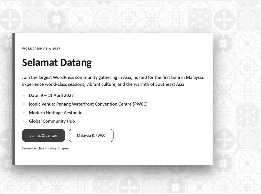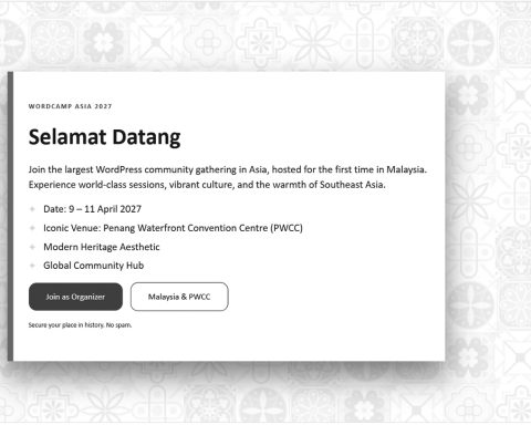 Sampai jumpa di Penang, Malaysia! Mari kita buat WordCamp Asia 2027 menjadi momen yang tak terlupakan.